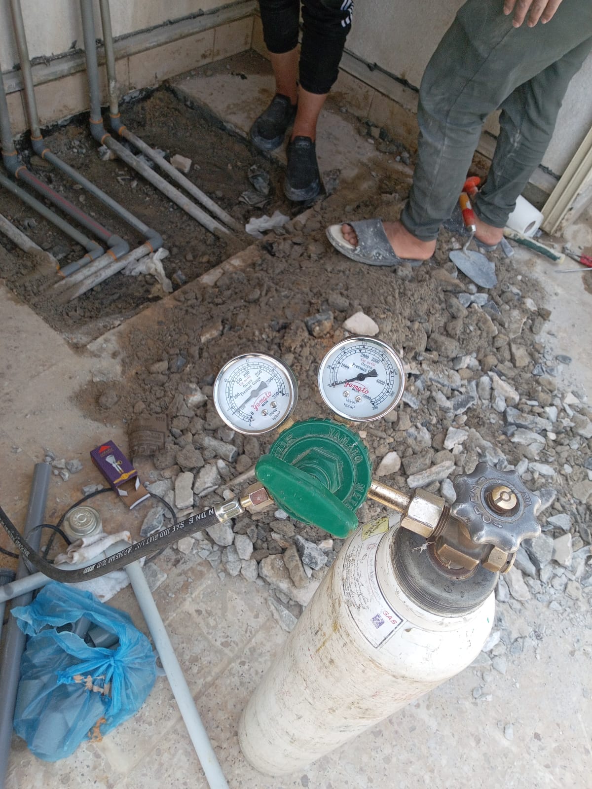 ✔ تحضير الشبكة: يتم إغلاق جميع الصمامات والمخارج لمنع تسرب الغاز خارج النظام.