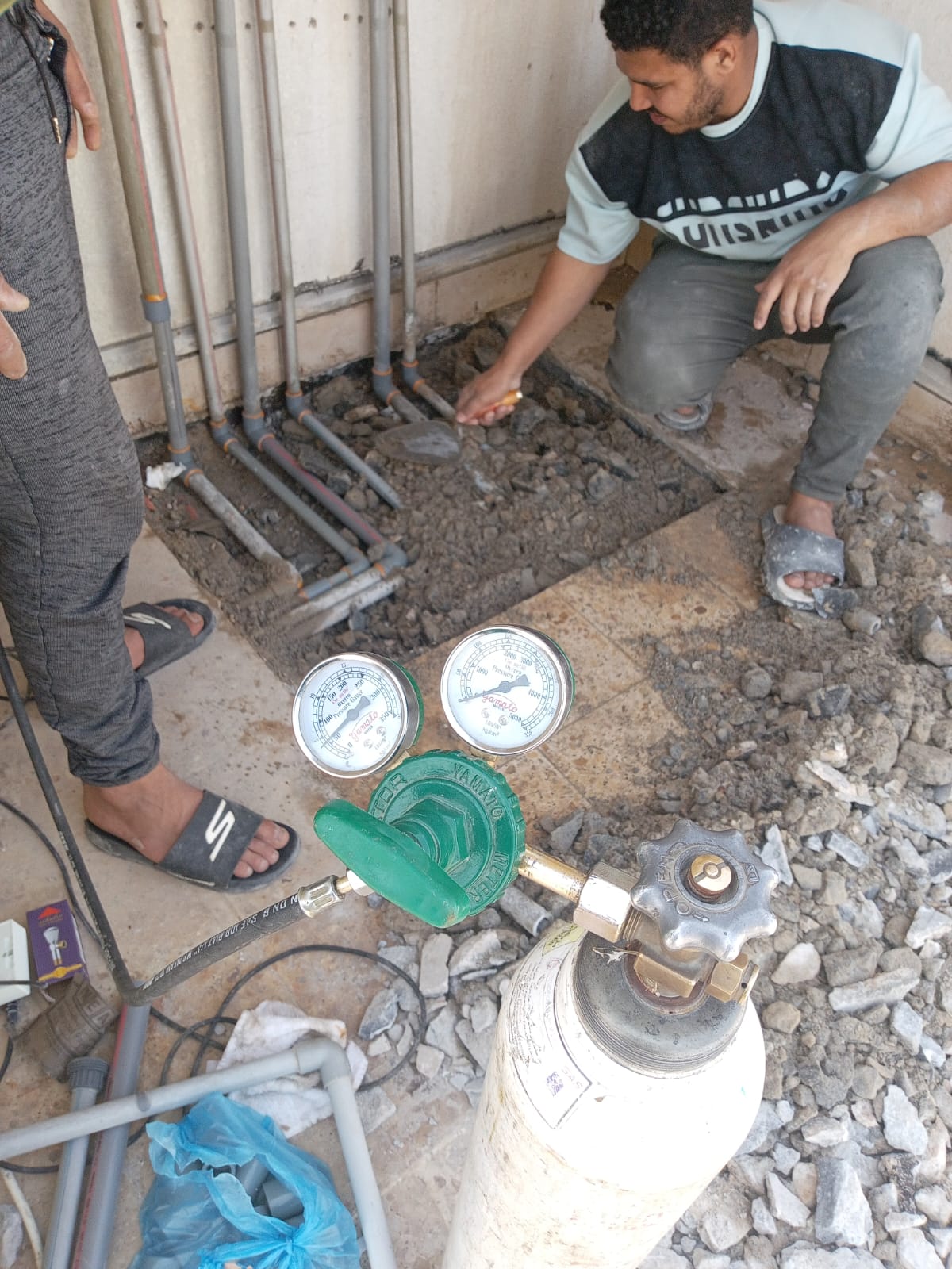 🔹 الفحص الأولي: يتم التحقق من جميع التوصيلات وإغلاق جميع الصمامات لضمان عدم تسرب الغاز خارج الشبكة.